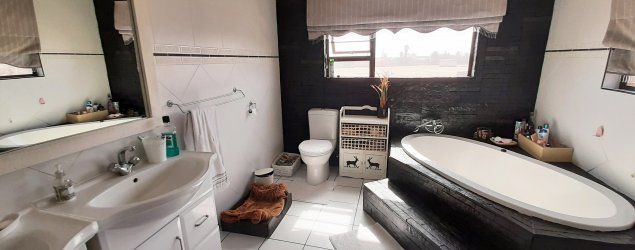 Very spacious house for the extended family 6 Bedrooms 5 Bathrooms Open plan kitchen living area with inside braai (downstairs) Scullery/Laundry Pantry Guest toilet (downstairs) TV Room Upstairs Guest toilet upstairs Huge entertainment area upstairs with sitting room, kitchen indoor braai and bar. Huge garages - park 6+ vehicles Most beautiful seaview Established garden Alarm system