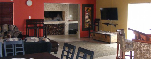 Large 5 bedroom house with 4 bathrooms, open plan kitchen living area with inside braai, smaller second living area with inside braai, laundry and a double tandem garage.